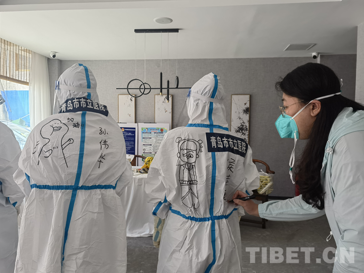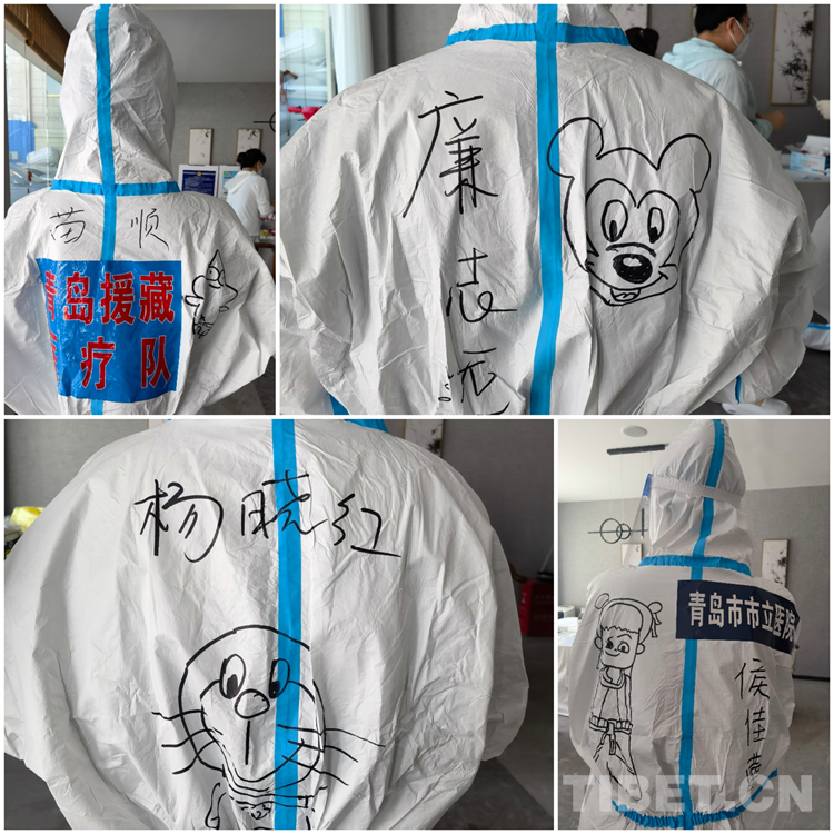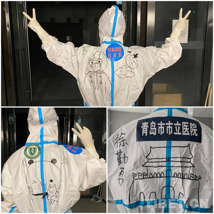 中國(guó)西藏網(wǎng)訊 青島援藏醫(yī)療隊(duì)自8月17日進(jìn)藏以來(lái), 隊(duì)員們無(wú)論工作多累多難、高原反應(yīng)有多難受,都沒有一句怨言,依然堅(jiān)持在西藏自治區(qū)日喀則市戰(zhàn)“疫”一線。工作之余,來(lái)自青島市市立醫(yī)院本部ICU的鐘翔宇發(fā)揮出了她的“隱藏技能”——在醫(yī)療隊(duì)的“大白”身上畫上漫畫,用表情包背到身上的方式給隊(duì)友們加油鼓勁兒。身著漫畫“戰(zhàn)袍”的隊(duì)員們斗志昂揚(yáng),朝氣蓬勃,互相鼓勵(lì)幫助,完成了一天天的工作任務(wù)。而這些古靈精怪的漫畫,在戰(zhàn)“疫”一線也成了一道靚麗的風(fēng)景線。(中國(guó)西藏網(wǎng) 記者/次旦拉姆 由桑珠孜區(qū)融媒體中心供稿)