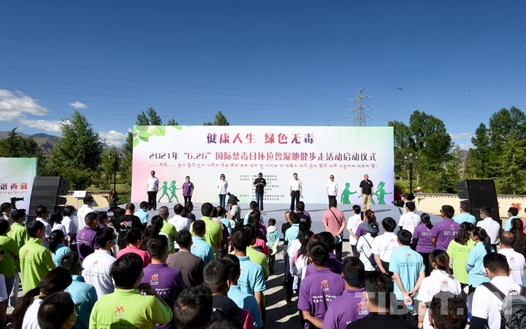 中國西藏網(wǎng)訊 6月26日,2021年“6·26”國際禁毒日環(huán)拉魯濕地健步走活動啟動儀式在拉薩市拉魯濕地文化廣場公園舉行。通過健身活動倡導“健康人生、綠色無毒”理念,動員廣大人民群眾參與禁毒斗爭。自治區(qū)、市兩級禁毒委成員單位代表、公安民警代表、演職人員等健步愛好者共計200余人參加了健步走活動。