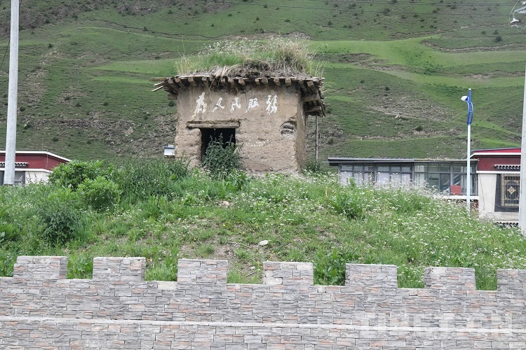瞭望臺建在吉若塘中心的一座土丘上,是一座夯土圍墻和細木屋頂建造的簡易小屋,高約2.5米,長寬各約3米,外墻上方醒目地方寫著“為人民服務”五個白色大字,現(xiàn)在依然很清晰。據(jù)當?shù)乩习傩战榻B,此前瞭望臺與營地之間還有一條高1.5米、寬約2米的地道,供駐守人員安全通行。