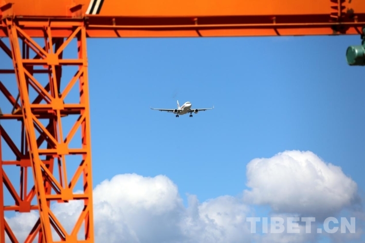 圖為一架西藏航空旗下的飛機(jī)從開工儀式現(xiàn)場(chǎng)上空飛過 攝影:王佳豪