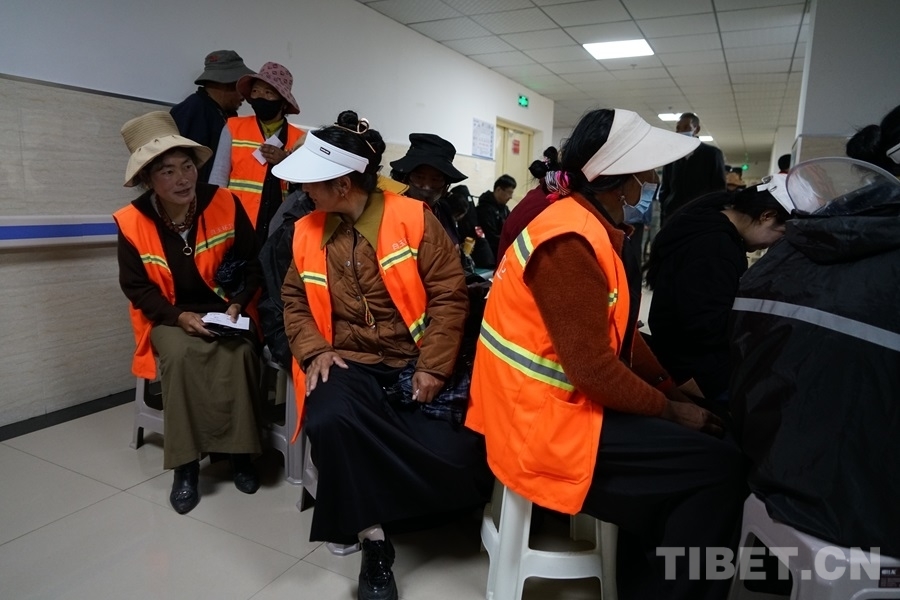 圖為環(huán)衛(wèi)工人們有序等待就診 攝影:周晴晴