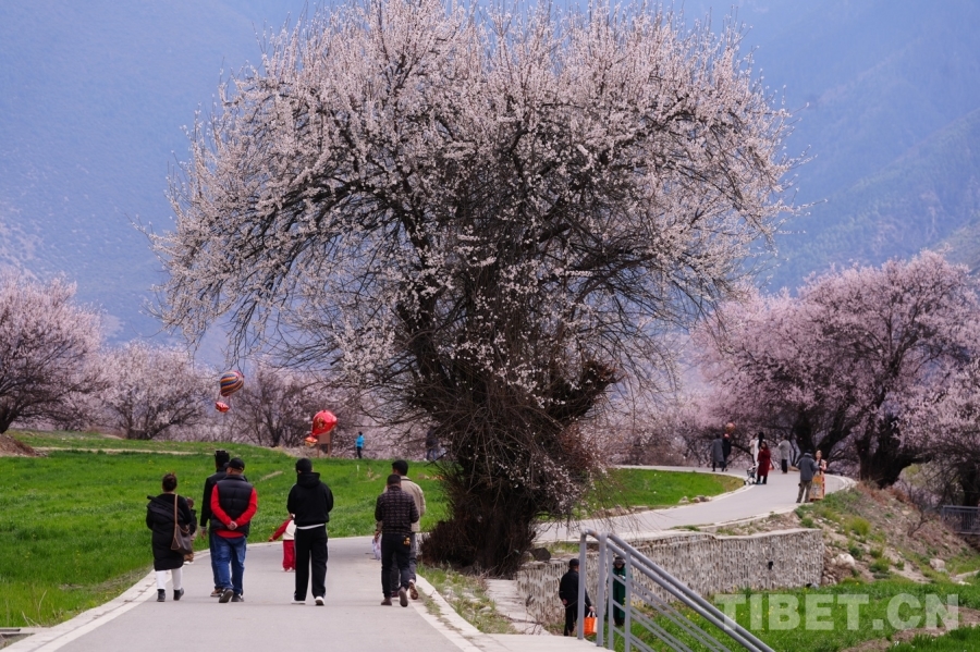 圖為游客在布久鄉(xiāng)朵當(dāng)村桃花園散步 攝影:德吉卓瑪
