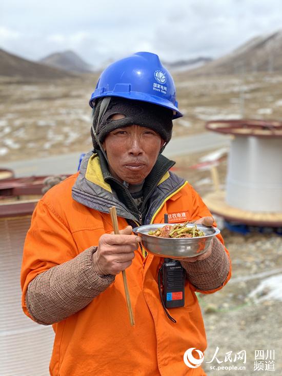 事實上,這些電力建設(shè)者都是“外地人”,剛來時也和記者一樣高原反應(yīng)嚴重,表現(xiàn)就是干點活就氣喘吁吁,夜里睡不著覺?!疤稍趲づ窭锓瓉砀踩?,頭疼、沒電、手機也沒信號,聽著遠處的狼叫聲音和呼呼的風(fēng)聲,那感覺確實不好受。”工程項目經(jīng)理曾繼波介紹。無法忍受惡劣的環(huán)境,施工隊不停的有人走,然后新的一批人再補充上來?!笆O碌木褪蔷鴱妼⒘耍 ?/p>