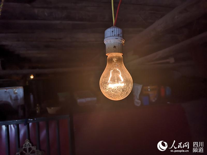 阿曲大叔家的燈泡因電壓低亮度不夠。胡朝輝 攝