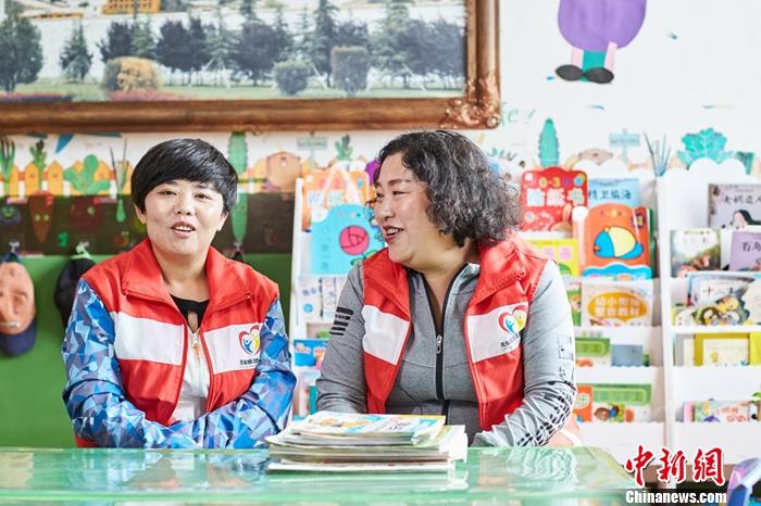 索南尖措園長(右)雖然沒有讀過書,但他明白,這個年齡的孩子非常需要學(xué)前教育。