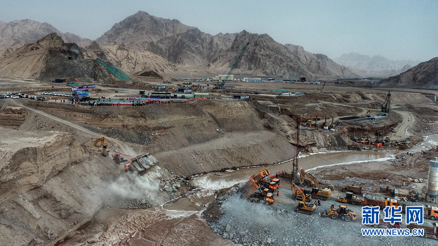 那棱格勒河水利樞紐工程成功截流。新華網(wǎng)發(fā)