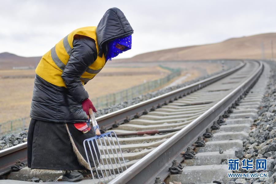 2月4日,養(yǎng)路工人在唐古拉山區(qū)養(yǎng)護青藏鐵路。新華社記者 張龍 攝