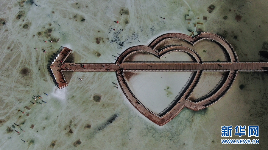 這是2020年9月23日拍攝的茶卡鹽湖“天空之鏡”景區(qū)一角(無(wú)人機(jī)照片)。新華社記者張龍攝