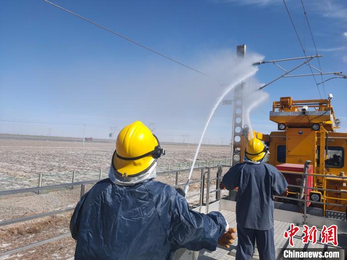 世界首條鹽湖鐵路絕緣子開始清洗