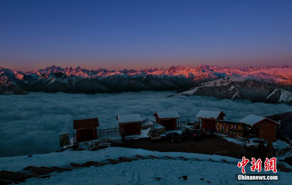 連日來,位于四川省雅安市寶興縣磽磧藏族鄉(xiāng)的達(dá)瓦更扎景區(qū)雪后放晴。期間,日出、藍(lán)天、云海、雪山、星空等美景如畫,夢(mèng)幻飄渺,蔚為壯觀。圖為日照金山。高華康 攝