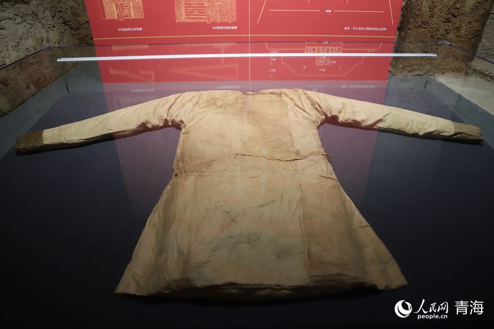 黃地聯(lián)珠團(tuán)窠對龍紋綾衣(都蘭縣熱水墓群出土)。人民網(wǎng) 楊啟紅攝