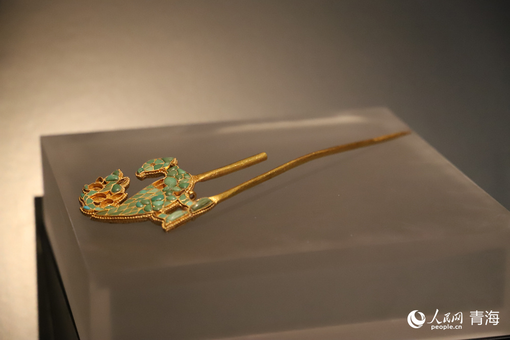 鑲綠松石鳳釵(都蘭2018血渭一號墓出土)。人民網(wǎng) 楊啟紅攝