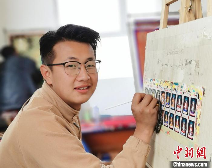 今年23歲的羅藏成立,10歲開始學畫畫,12歲時跟著桑杰加系統(tǒng)學習唐卡,目前,羅藏成立專注于繪制微型唐卡——扎卡,每個月也能掙1萬元左右。