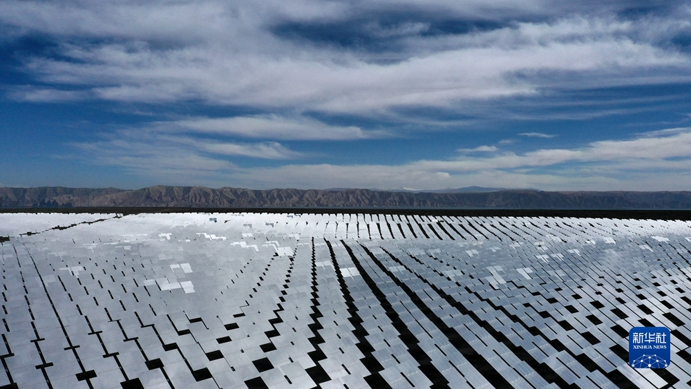 陽光照射蔚藍(lán)的電池板,光能便轉(zhuǎn)化成源源不斷的電能;風(fēng)力發(fā)電機(jī)的葉片迎風(fēng)飛轉(zhuǎn),風(fēng)被“捕捉”進(jìn)一條條輸電線;百米高的吸熱塔和“鏡子海洋”組成熔鹽塔式光熱電站,科技感與綠色減碳有機(jī)結(jié)合……