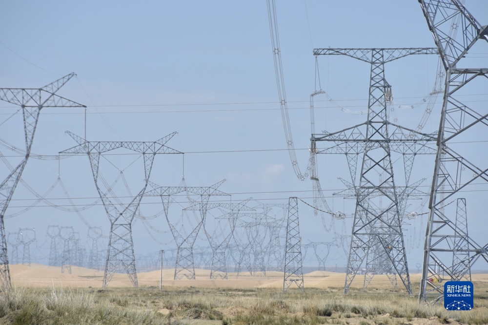 這是2021年9月1日拍攝的位于青海省海南藏族自治州共和縣的青豫特高壓輸電線路。新華社記者 解統(tǒng)強(qiáng) 攝