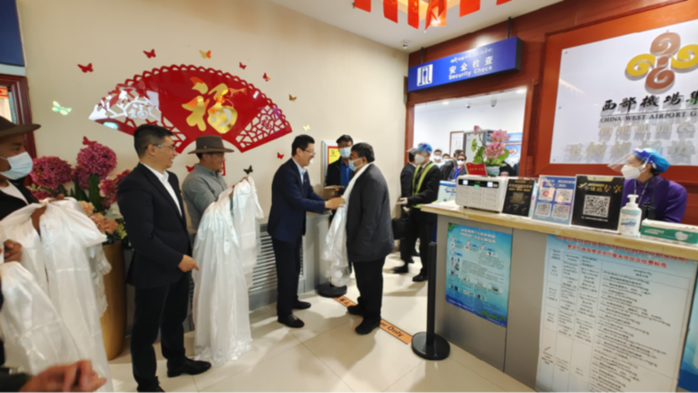 玉樹州委常委、副州長(zhǎng)、指揮部黨委書記、指揮袁浩宗,州委常委、組織部長(zhǎng)薛亞軍,州委組織部常務(wù)副部長(zhǎng)陳有軍,副部長(zhǎng)邴巴扎西,副部長(zhǎng)、指揮部黨委委員王家兵在機(jī)場(chǎng)大廳迎接,并第一時(shí)間為北京市第五批援青干部人才及送行團(tuán)成員獻(xiàn)上了飽含玉樹各族各界干部群眾深情厚誼的哈達(dá),與他們一一握手,向大家的到來(lái)表示熱烈的歡迎。