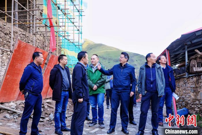 圖為馮志勇(中)在建設項目工地調(diào)研。(資料圖) 上海市援青干部聯(lián)絡組 供圖