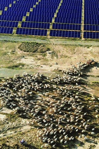 戈壁灘變身光伏牧場