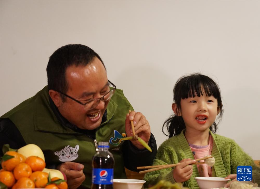 1月14日晚,馬忠華正和女兒一起吃餃子。新華社記者 解統(tǒng)強 攝