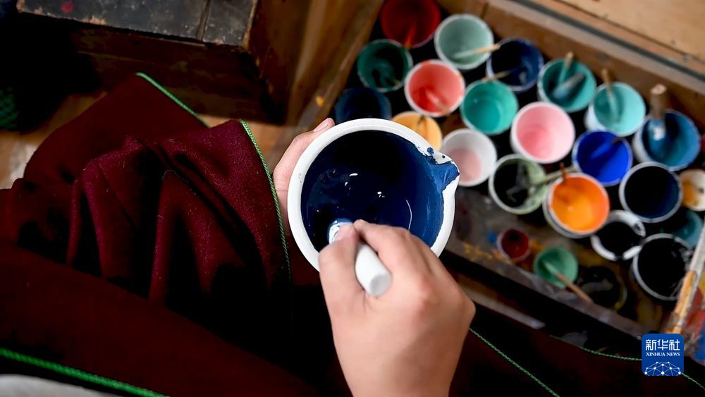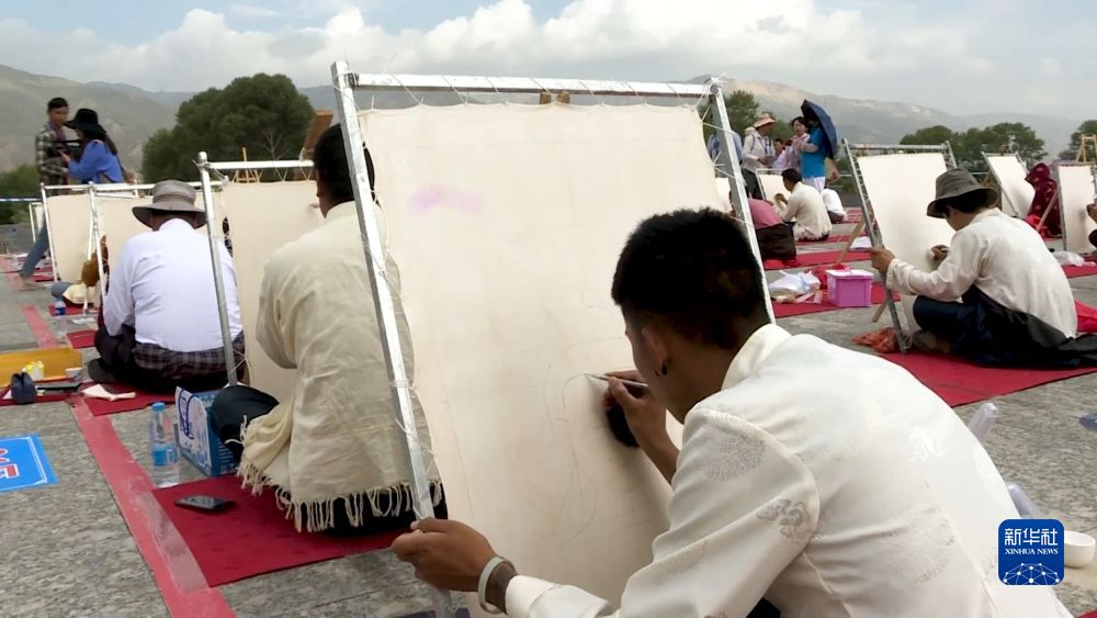 打磨布面、研制畫料、著色、暈染、勾線……唐卡創(chuàng)作的每一個環(huán)節(jié)都考驗著畫師的專注力和耐力。