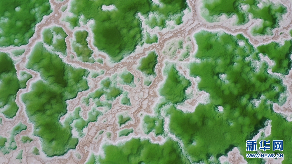 8月15日,航拍地處青海省海西州茫崖市的翡翠湖。翡翠湖是一個人工鹽湖,田字狀的湖水呈現(xiàn)出青翠的色彩。[詳細]