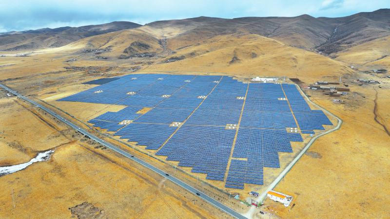 12月22日,四川省阿壩藏族羌族自治州阿壩縣蘭措瑪光伏電站,一片片光伏板在陽光照射下源源不斷地送出清潔電力。蘭措瑪光伏電站是阿壩縣首個(gè)大型光伏電站,除了發(fā)揮發(fā)電作用外,光伏板的下方還種植了牧草,實(shí)現(xiàn)經(jīng)濟(jì)效益、社會(huì)效益和生態(tài)效益的多重豐收。