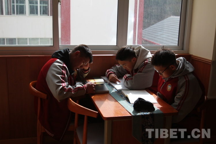 圖為陽(yáng)光下看書(shū)的學(xué)生們 攝影:登真巴珍