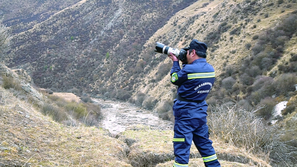 先巴才旦用相機(jī)記錄巡護(hù)途中所見。張得俊 攝