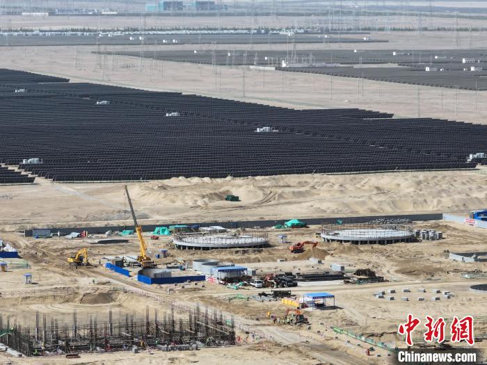 圖為青海省格爾木市,全球規(guī)模最大的液態(tài)空氣儲能示范項目施工現(xiàn)場。(無人機照片)中新社記者 馬銘言 攝
