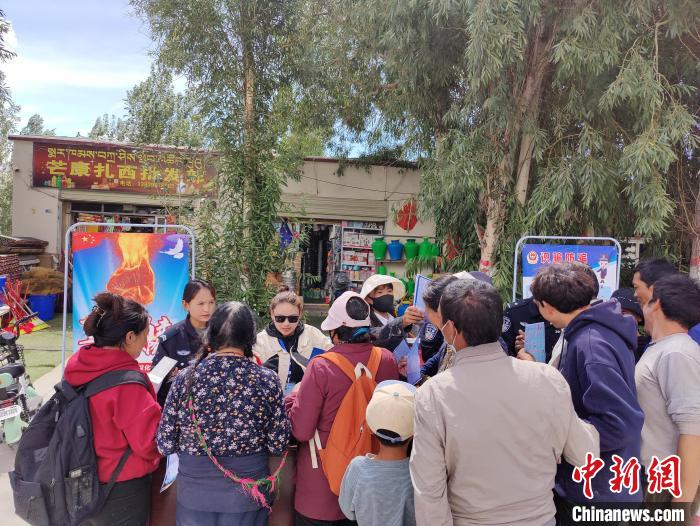 圖為民警聯(lián)合普蘭鎮(zhèn)政府工作人員進(jìn)行普法宣傳活動(dòng)。黃創(chuàng)偉 攝