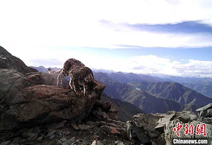 圖為7月16日,西藏拉薩市堆龍德慶區(qū)“乃朗谷雪豹重要棲息地”內(nèi)紅外線相機(jī)拍攝到的雪豹。 中新社發(fā) 山水自然保護(hù)中心 供圖