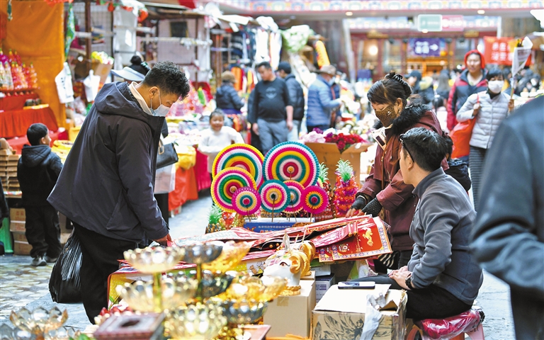 圖為市民在選購藏式春聯(lián)。記者 唐斌 攝