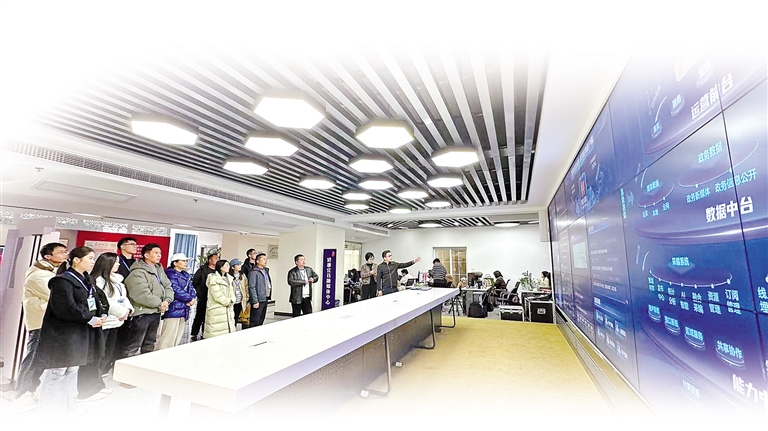 圖為瓊結(jié)縣宣傳思想文化系統(tǒng)“鄉(xiāng)村數(shù)字文化”考察組在湖北省宜昌市三峽融媒體中心參觀學(xué)習(xí)。 記者 次仁平措 本報通訊員 倫珠澤仁 攝