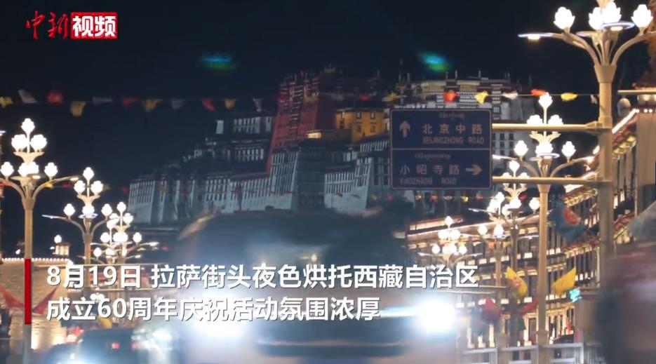8月19日,拉薩街頭夜色烘托西藏自治區(qū)成立60周年慶?;顒?dòng)氛圍濃厚。隨著西藏自治區(qū)成立60周年慶祝活動(dòng)臨近,拉薩街頭彩旗飄揚(yáng)、人行天橋裝扮一新、燈光秀炫彩奪目,處處洋溢著一派祥和歡慶的氣氛。(李林 旦增卓瑪 制作 王嘉怡)