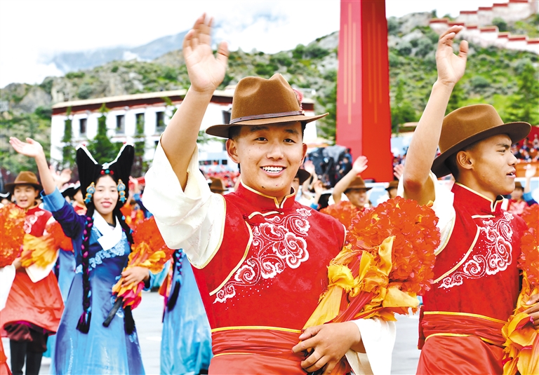 8月21日上午,西藏各族各界干部群眾約2萬人歡聚拉薩市布達(dá)拉宮廣場(chǎng),熱烈慶祝西藏自治區(qū)成立60周年。