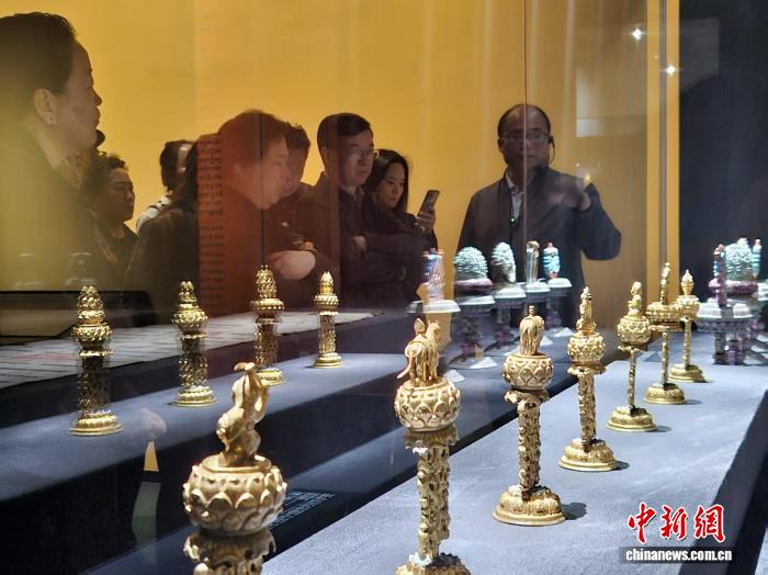 為慶祝西藏自治區(qū)成立60周年,“祥開萬(wàn)象——故宮與西藏文物聯(lián)展”28日在拉薩西藏博物館開幕。其中,23件/套文物首次亮相,七世達(dá)賴進(jìn)獻(xiàn)乾隆皇帝的觀音菩薩像等文物首次回藏“探親”。