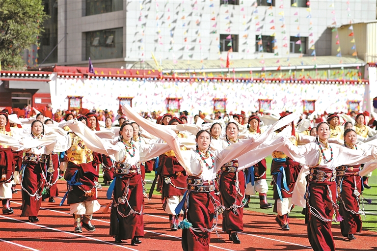 開幕式上的群眾游行方隊(duì)。記者 平措朗加 溫凱 攝