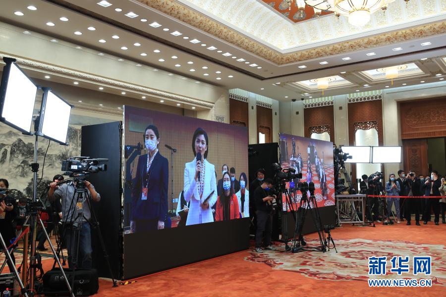 3月4日晚,十三屆全國(guó)人大四次會(huì)議在北京人民大會(huì)堂新聞發(fā)布廳舉行新聞發(fā)布會(huì),大會(huì)發(fā)言人張業(yè)遂就會(huì)議議程和人大有關(guān)工作回答中外記者提問(wèn)。這是記者在分會(huì)場(chǎng)通過(guò)網(wǎng)絡(luò)視頻方式采訪。新華社記者 金良快 攝