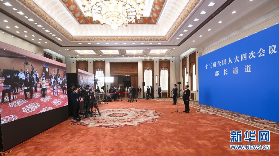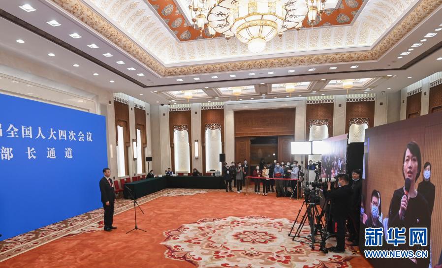 3月5日,第十三屆全國人民代表大會(huì)第四次會(huì)議舉行首場“部長通道”采訪活動(dòng)。這是記者在分會(huì)場通過網(wǎng)絡(luò)視頻方式提問。新華社記者 曹燦 攝