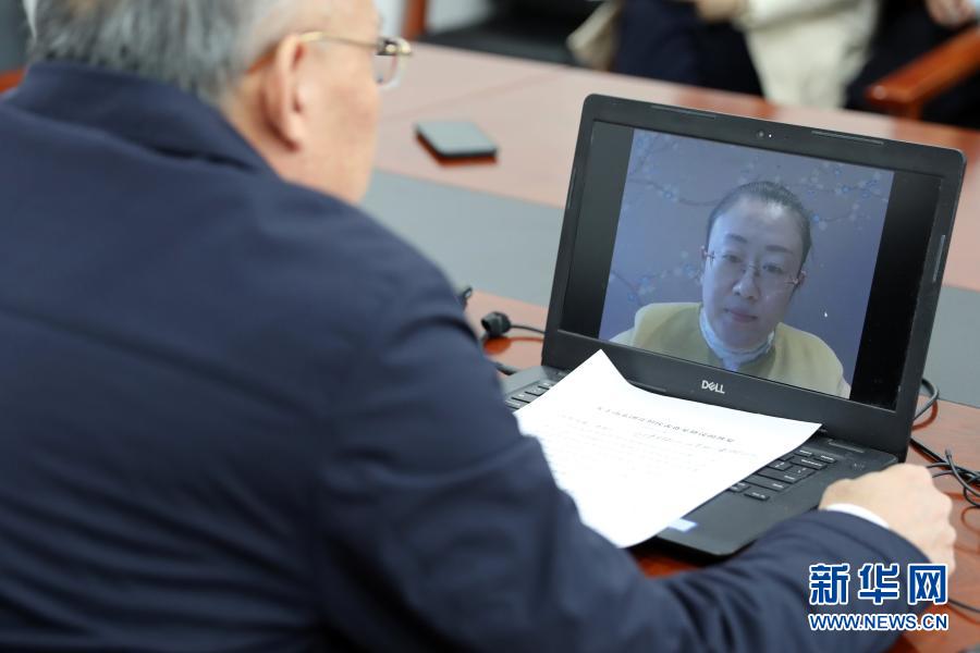 3月7日,全國人大代表、山東省泰安市農科院食用菌研究所所長孔怡(屏幕畫面中)同農業(yè)農村部種業(yè)管理司副司長孫好勤在北京進行網絡視頻連線。這是一次不尋常的兩會“速遞”:3月5日代表提出建議,3月6日建議經國務院辦公廳轉到農業(yè)農村部,3月7日中午就實現了部門與代表的“云對話”。新華社記者 李木子 攝
