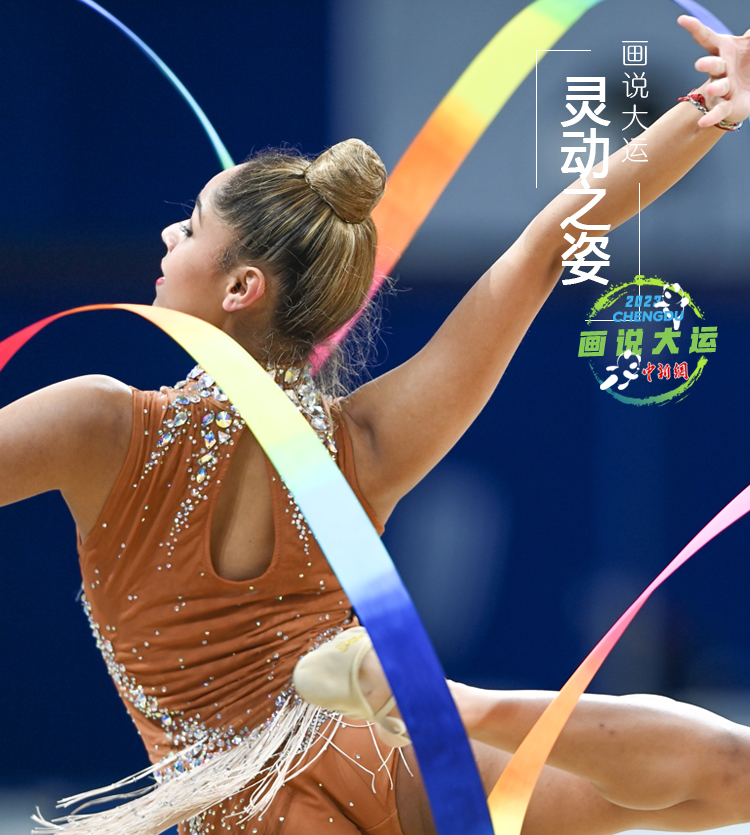 在成都第31屆世界大學(xué)生夏季運動會藝術(shù)體操的賽場上,運動員們用柔和挺拔的身姿,向我們詮釋了青春的靈動之美。輕盈流暢的體操動作搭配剛?cè)岵?jì)的舞姿,這是力與美的結(jié)合,更是柔與韌的藝術(shù)!圖為南非選手DEWAN Azra參加藝術(shù)體操個人全能決賽。