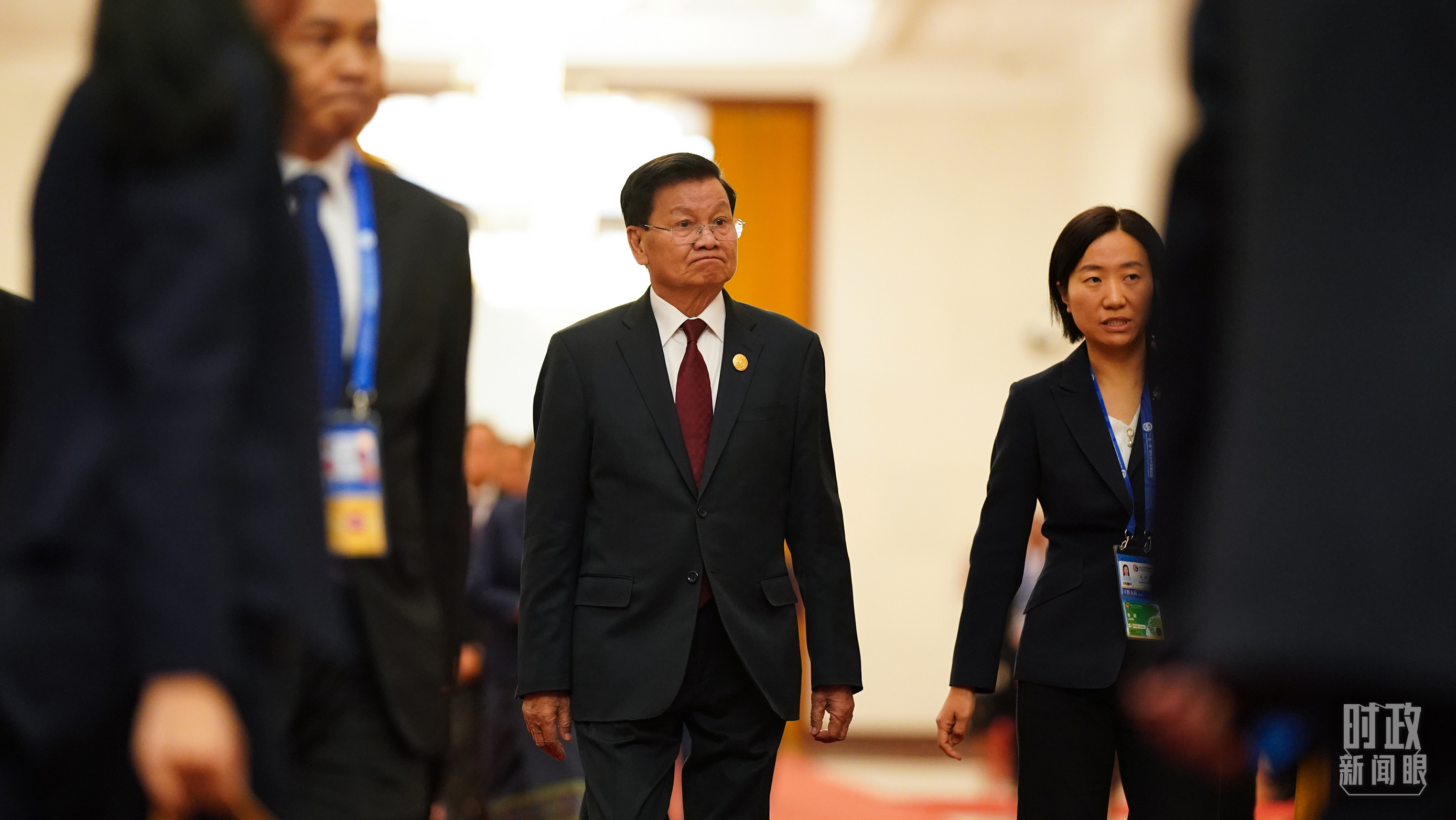 老撾人民革命黨中央總書記、國家主席通倫走向會見廳。(總臺國廣記者李晉拍攝)